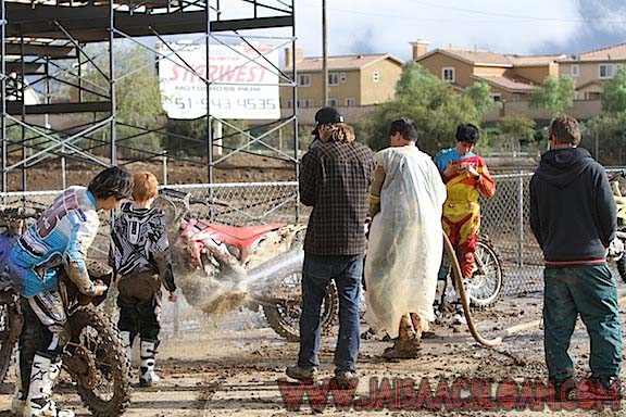 HB cleaning the mud off his bike so he could mash some more turns