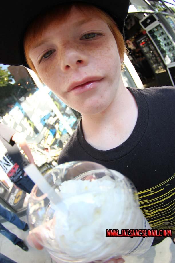 Jammin Josh drinkin some kind of smoothie at da mall.
