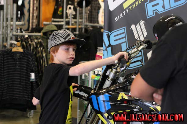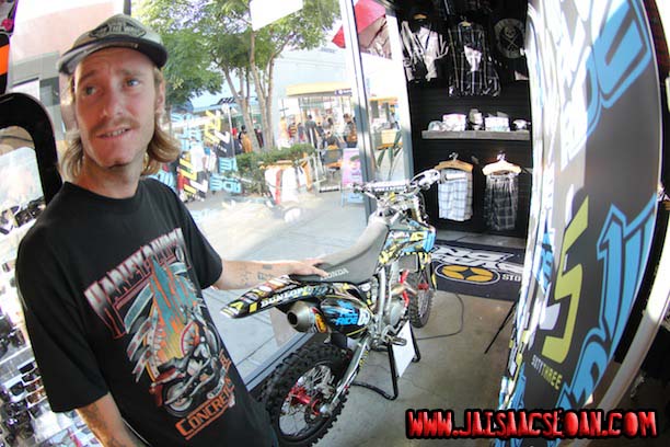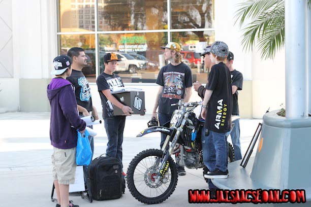 Today was the big bike giveaway at the No Fear store at the Block in Orange Ca so we jumped in the car and sat in traffic for 2 hours to go give away this masterpiece from the skilled mind and hands of master mechanic Jeff Nix away. It was sad to see that amazing bike go but hopefully it went to a new awesome home and rider.