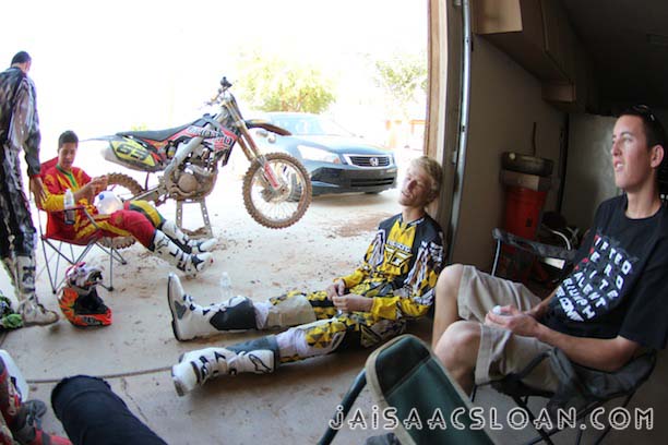 Relaxin after a long day on the track, it was a hard attack, but they knew Micah 100 had their back. I think it's time for a snack, an ice pack, or some photo play back, so cut the track, put your bike on the rack, lay back, and holler at jaisaacsloan.com cuz we're never wack !!!!